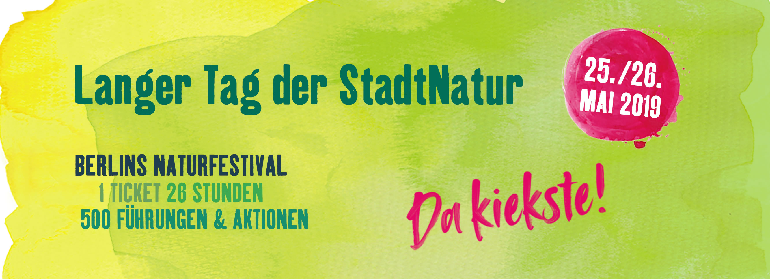 Wir laden Sie herzlich zum Langen Tag der StadtNatur am 25. und 26. Mai 2019 ein. Sie können 26 Stunden lang an über 500 Führungen in Berlin teilnehmen.