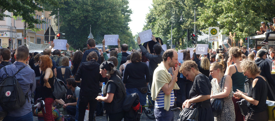 이에 시민들은 조를 짜서 난민을 지키기 위해 학교 근처 구역을 막아 놓은 경찰 펜스 앞에서 숙식하며, 24시간 경찰들을 감시하고 난민의 목소리를 널리 알리고 있다. 도시 곳곳에서 난민들을 위한 바자회를 열었고, 거리와 광장에서는 수천 명이 모여 난민들의 강제퇴거 및 추방에 반대하는 시위를 했다. 지난 1일에도 베를린 학생과 대학생들을 주축으로 약 2000여 명이 거리를 행진하는 시위가 있었다. 하지만 동일한 날, 더 이상 철거작전은 없을 것이라고 했던 시 정부의 타협안으로 평화가 감돌던 지역구에서는 다시금 강제퇴거 명령이 집행됐다.